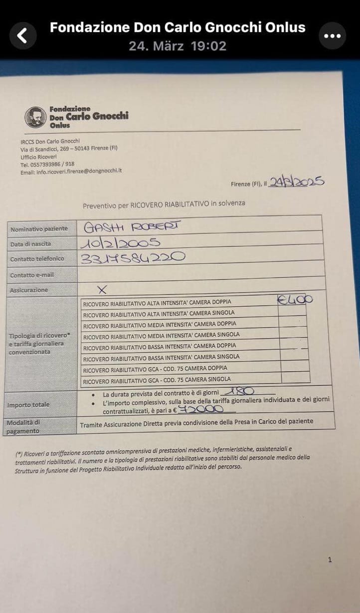 “Në janar 2024, një infeksion i rëndë në mushkëri e detyroi të përballet me sfida të tjera. Në këtë moment, shpresat për një shërim të mëtejshëm janë të lidhura me mundësinë për trajtim të specializuar në Itali. Megjithatë, kostot janë shumë të larta dhe për një nënë të vetme si unë, është shumë e vështirë të mbuloj shpenzimet e trajtimeve dhe udhëtimit. Ju lutem, na ndihmoni që Roberti të vazhdojë të luftojë. Çdo kontribut, sado i vogël, mund të bëjë një ndryshim të madh dhe mund t’i japë mundësinë për të vazhduar betejën për jetën e tij”, ka thënë nëna e Robertit, Afërdita.