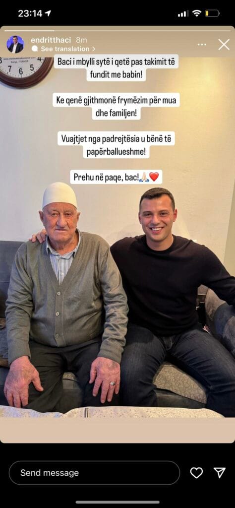 “Baci i mbylli sytë i qetë pas takimit të fundit me babin! Ke qenë gjithmonë frymëzim për mua dhe familjen! Vuajtjet nga padrejtësia u bënë të papërballueshme! Prehu në paqe bac”, ishte reagimi i tij në instastory.