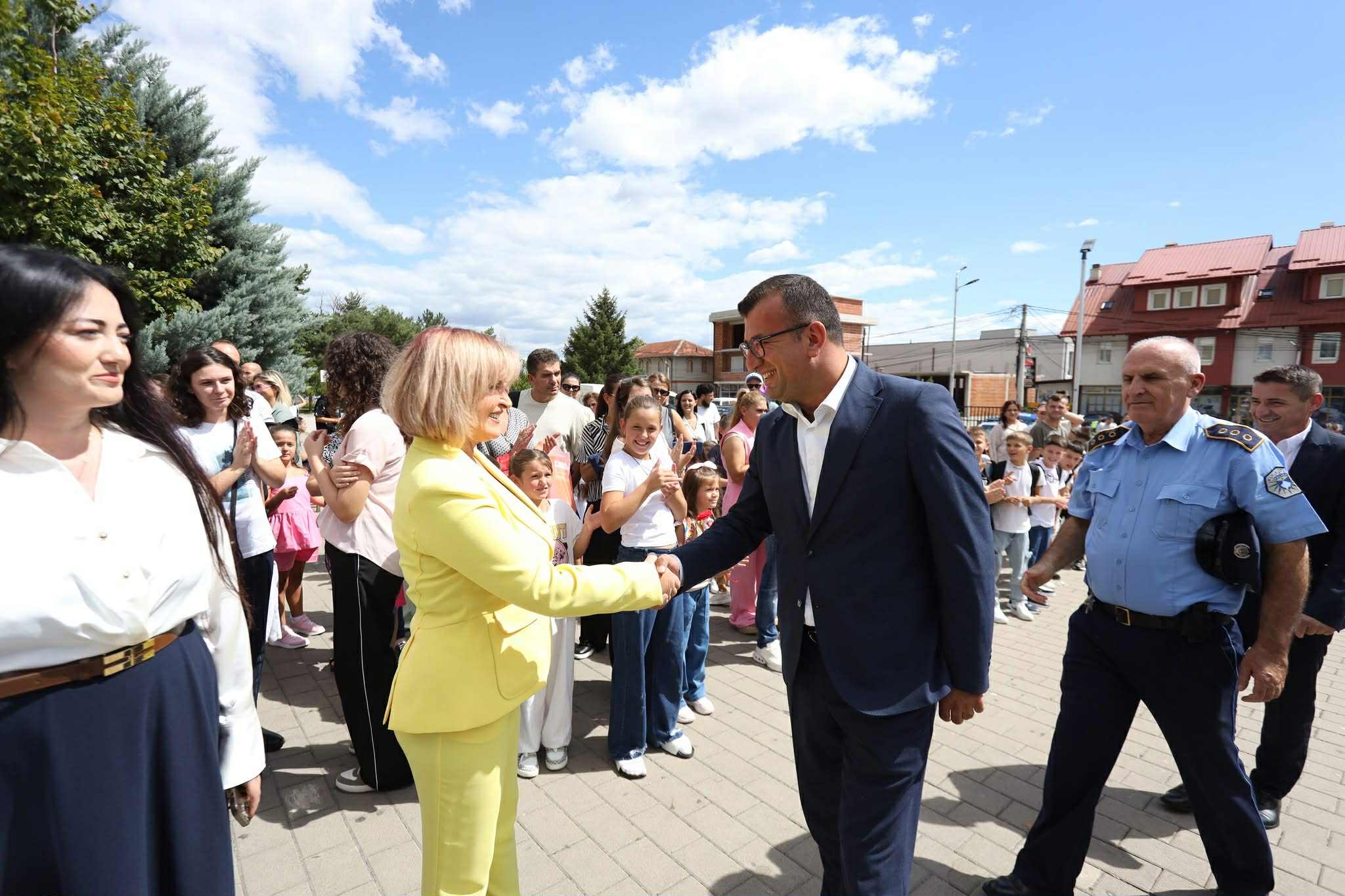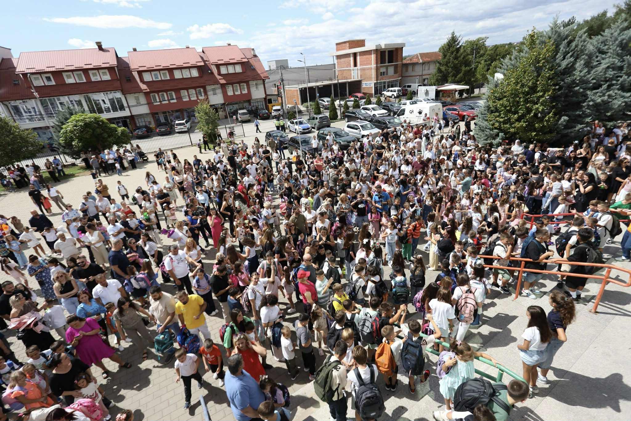 Në Shkollën Fillore “Bajram Curri”, ku u mbajtë një ceremoni e nisjes së vitit shkollorë në orën 13:00 nën rrezet përvëluese të diellit.