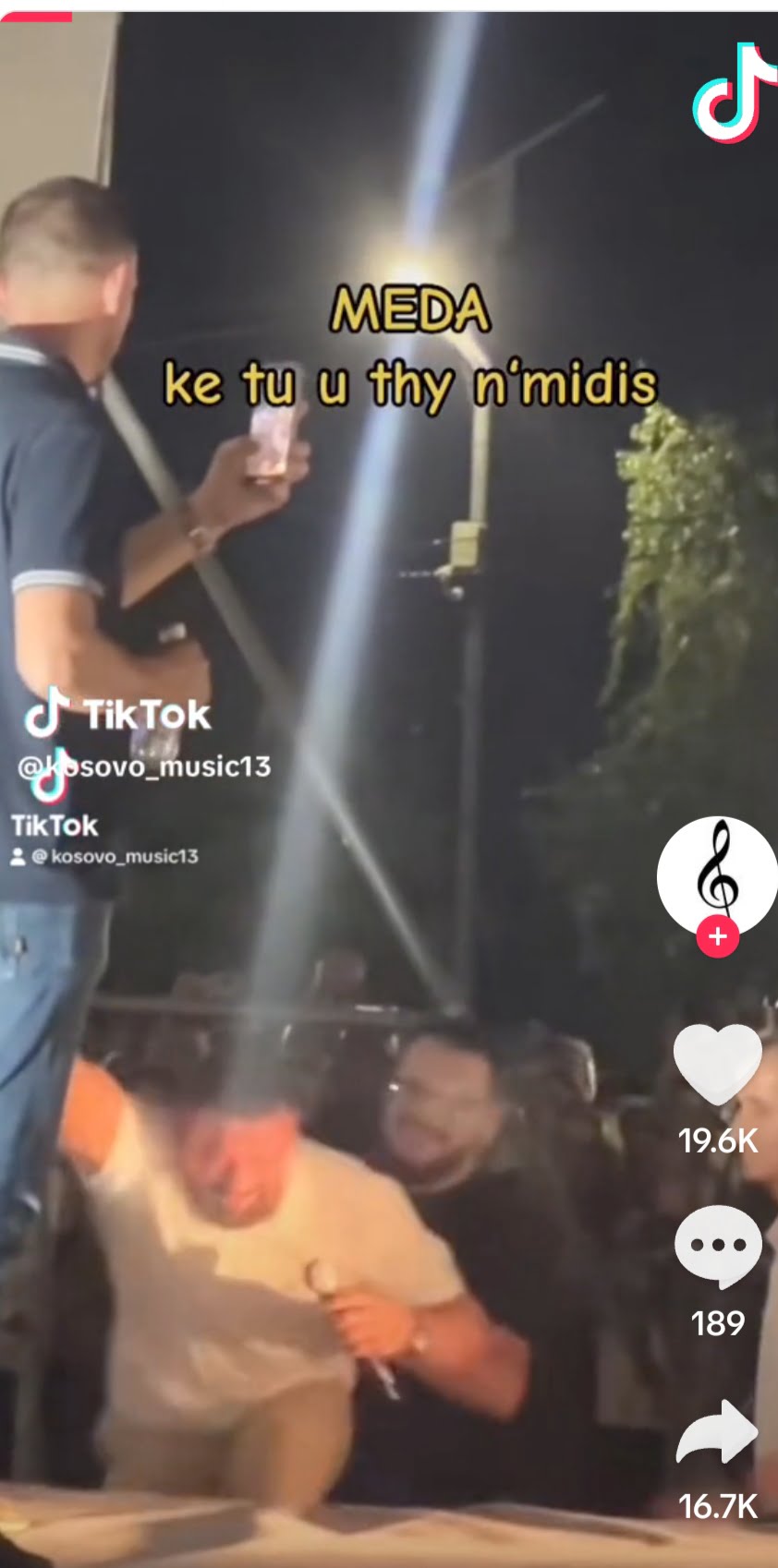 Një video qe po qarkullon në rrjet shihet teksa këngëtari hynë në skenë rrëzohet, por me pas u ngrit në këmbë dhe vazhdoi të këndonte sikur të mos kishte ndodhur asnjë incident.