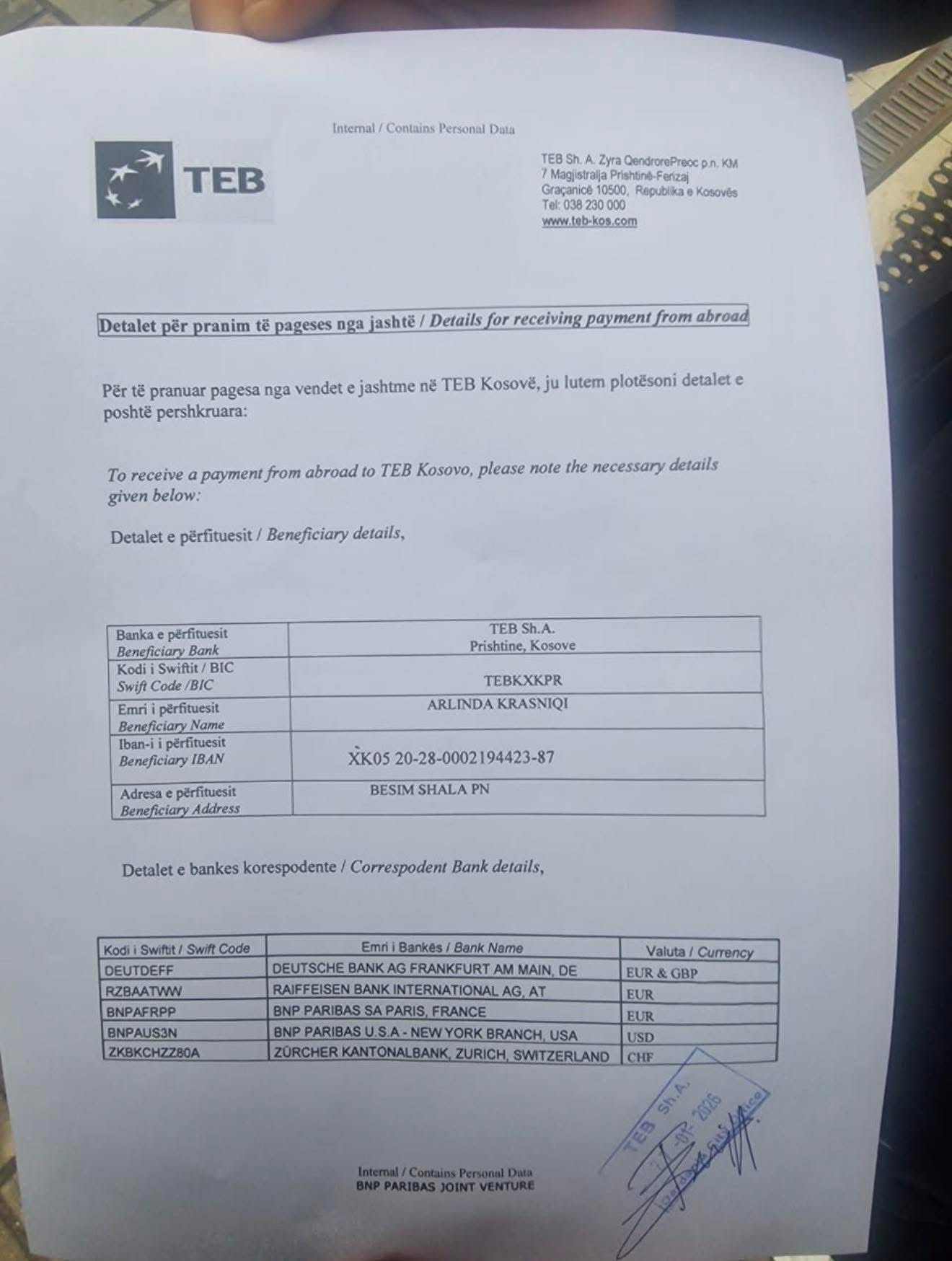 Banka: TEB Sh.A – Prishtinë, Kosovë