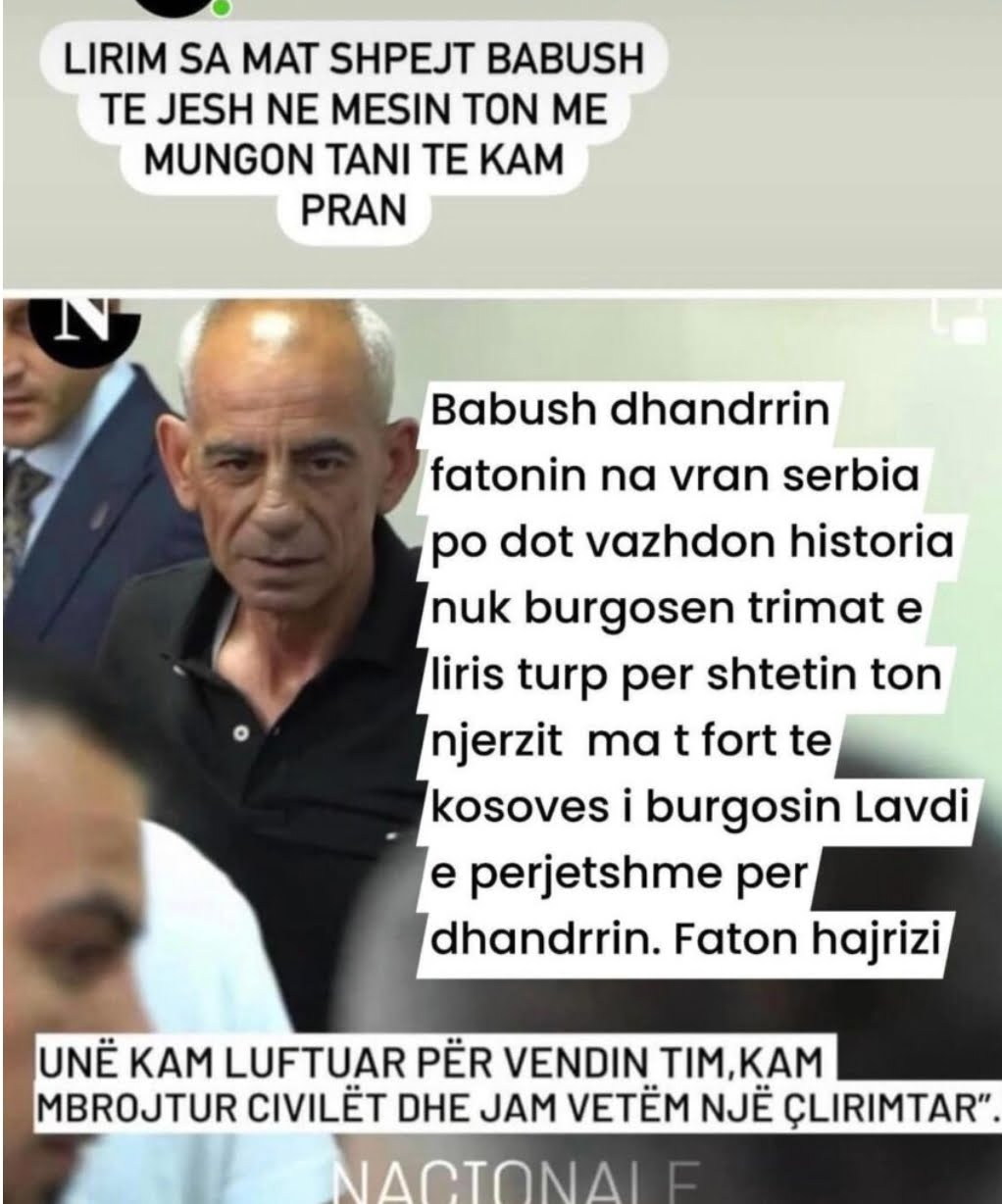 “Lirim sa më të shpejtë babush të jesh në mesin tonë. Me mungon tani të të kem pranë. Babush, dhëndrit tënd Fatonin ta vranë Serbia por do të vazhdon historia. Nuk burgosen trimat e lirisë. Turp për shteti tonë. Njerëzit më të fortë të Kosovës i burgosi. Lavdi e përjetshme për dhëndërin tonë”, ka shkruar Shala.