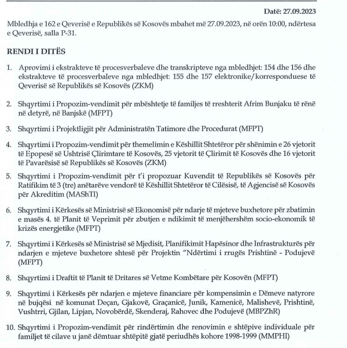 Kjo është pika e dytë e rendin të mbledhjes së Qeverisë.