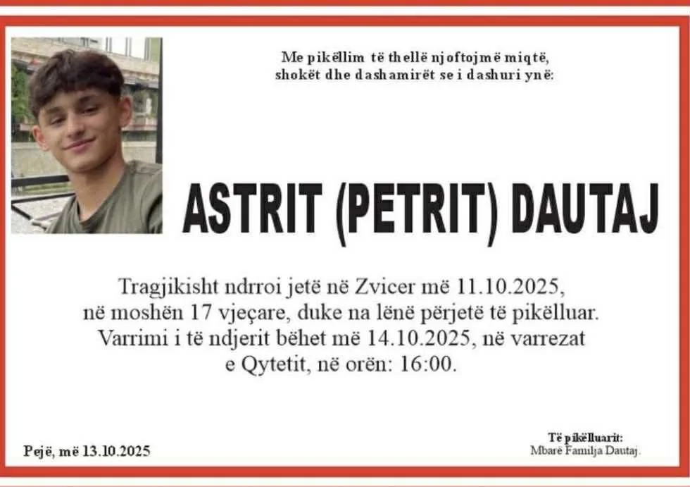 LajmeTronditëse: 17-vjeçari kosovar humb jetën tragjikisht në Zvicër, do t’u coptohet shpirti nga këto pamjeby telalli.infoOctober 15, 2025October 15, 202517-vjeçari kosovar humb jetën tragjikisht në Zvicër.