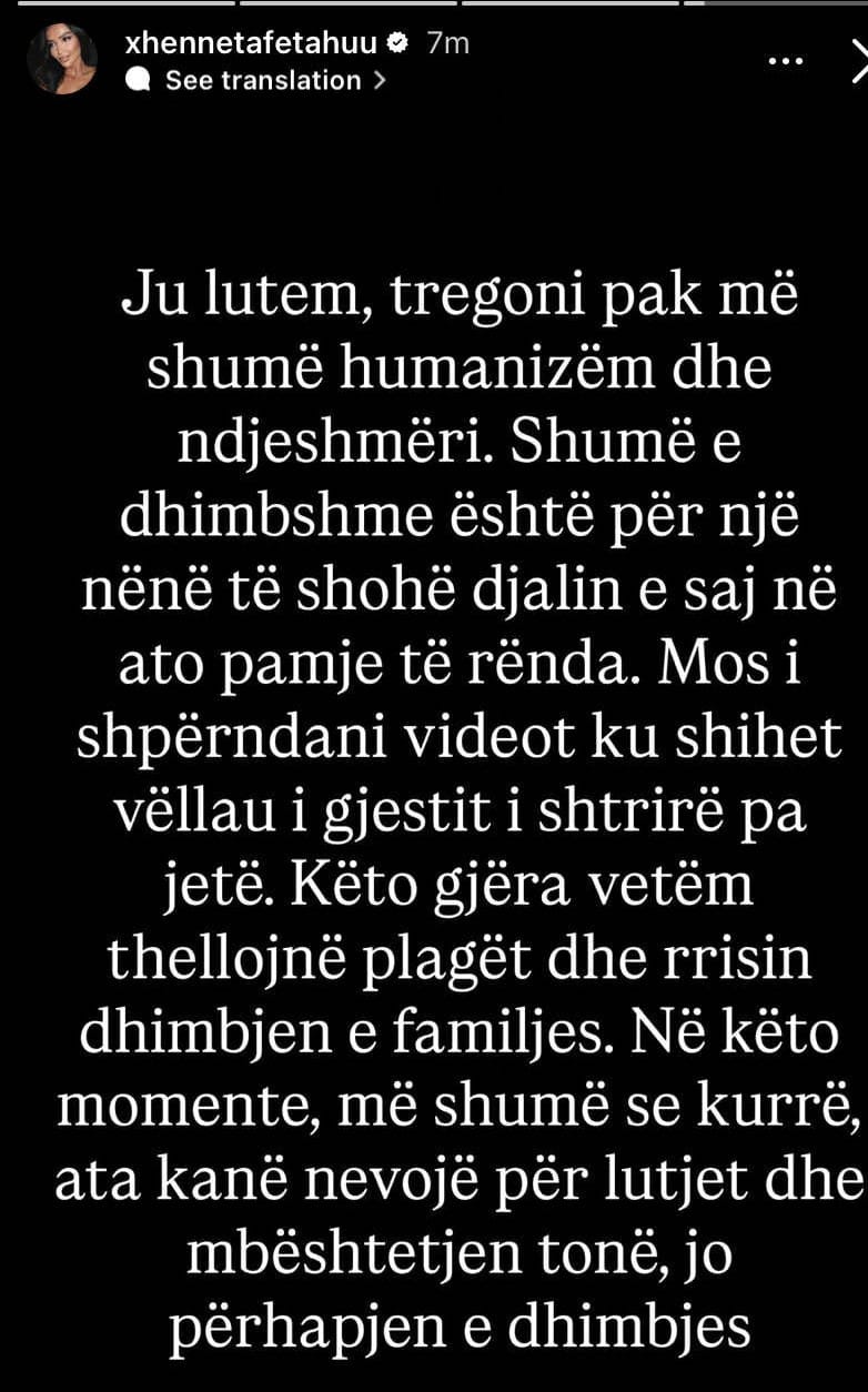 Ndërsa Xheneta, ish e dashura e Gjestit ka shprehur ngushëllimet më të sinqerta për Gjestin dhe familjen e tij