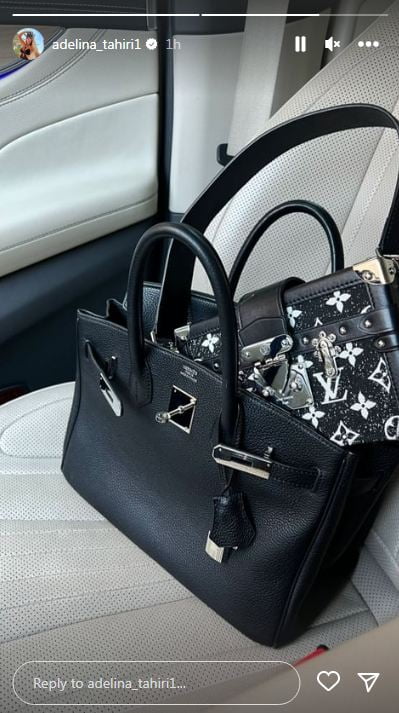 E në fotografinë e fundit ajo ka publikuar dy ҫanta luksoze të cilat po i lë në veturë.