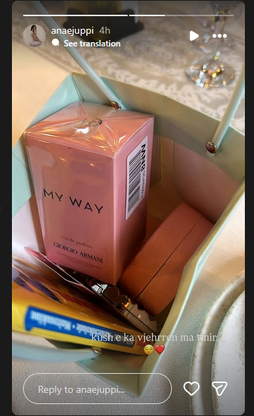 Sot ka postuar një dhuratë që i ka bërë nëna e të dashurit të saj, Kevin Edmond, me mbishkrimin “Kush e ka vjehrrën ma tmiren”.