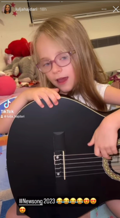 Në fotografinë e fundit, Lulja ka treguar se vajza e madhe ka talent luajtjen në kitarë.