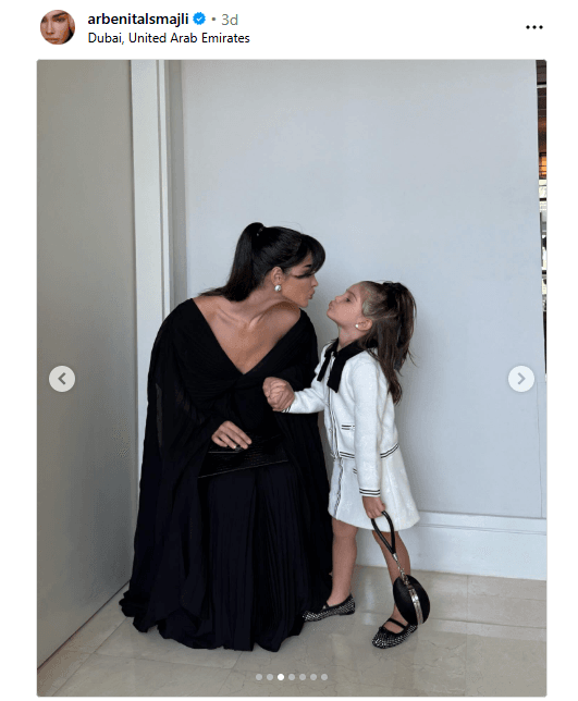 Në një postim të fundit në Instagram, Arbenita shihet e veshur me një fustan elegant të zi, ndërsa vajza e saj ka zgjedhur një veshje të bardhë klasike me detaje të zeza.