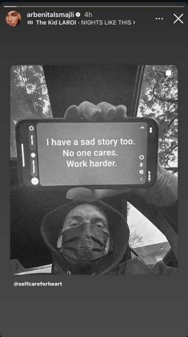 Postimi i saj, i publikuar në InstaStory, është një thirrje për të gjithë ata që përballen me vështirësi, duke theksuar se çdo person ka një histori të vetën, por rëndësia që ka është të vazhdojmë të punojmë fort.
