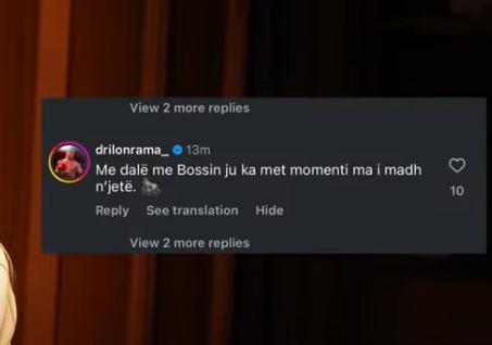 Madje, pati reagim edhe nga vet reperja e cila iu kundërpërgjigj Drilonit në një koment.