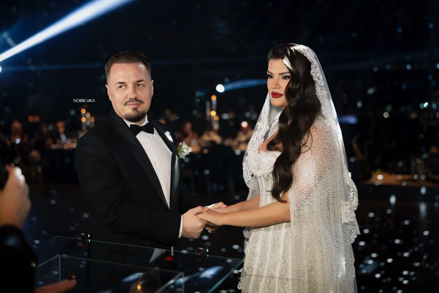 Ceremonia martesore u organizua në një nga restorantet më të njohura të qytetit, i dekoruar në mënyrë elegante dhe me shumë finesë, duke krijuar një atmosferë festive dhe romantike.