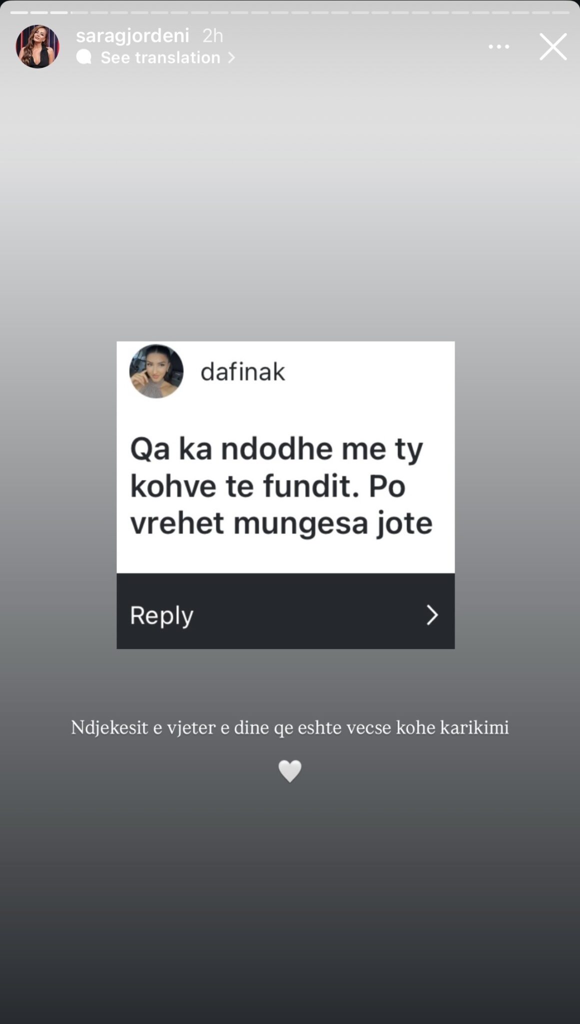 Njëri prej ndjekësve i shkroi: “Po na mungon prezenca jote”, ndërsa Sara iu përgjigj kështu: