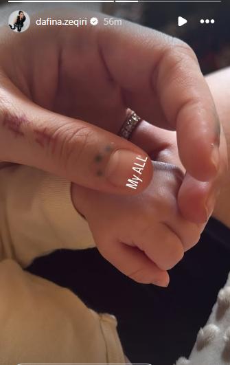 Së fundmi, Dafina ka ndarë në llogarinë e saj në Instagram një foto prekëse, ku shihet duke mbajtur të birin në krahë.