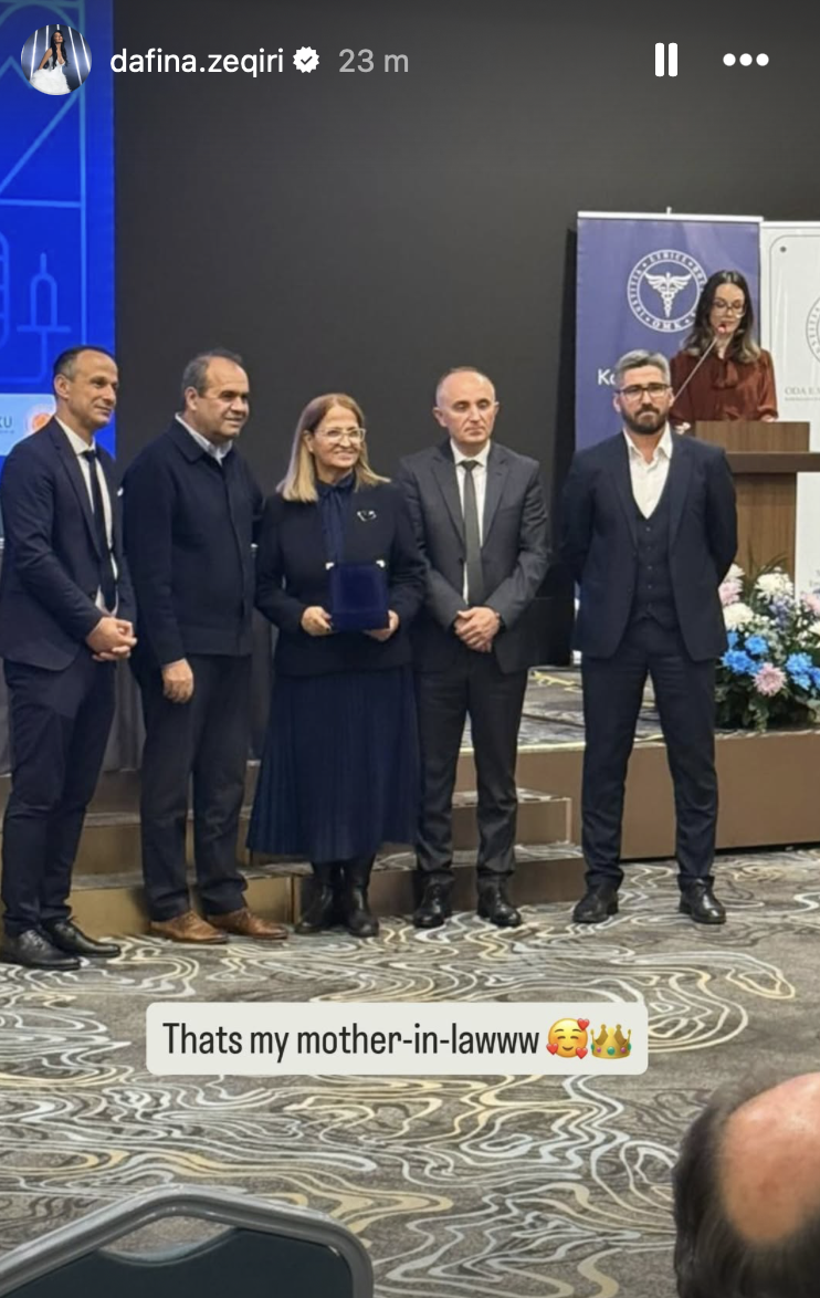 Kjo foto tregon se Dafina është thellësisht krenare për vjehrrën e saj që ka përfaqësuar bashkëshortin (Prof. Dr. Rexhep Gjergji) në ceremoninë e ndarjes së çmimit.