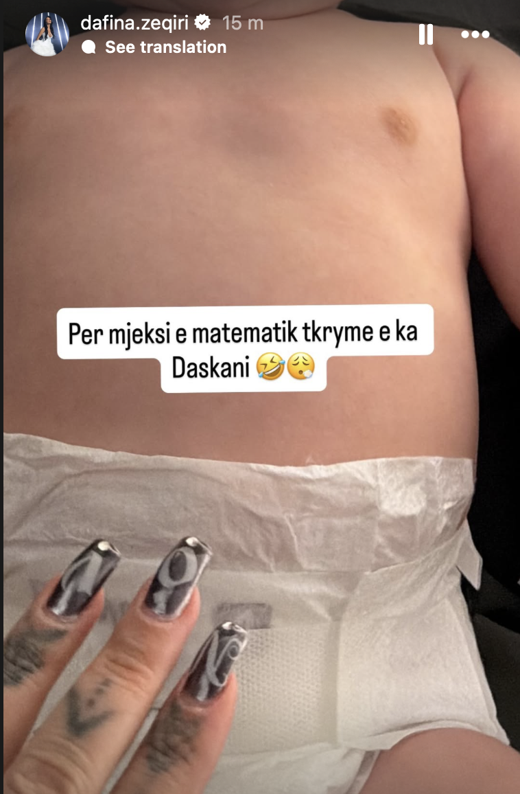 Ajo ka postuar një foto të vogëlushit dhe ka shkruar: “Për mjekësi e matematikë të kryer e ka Daskani”, duke aluduar se djali i saj ka trashëguar zgjuarsinë e familjes së Kreshnikut.