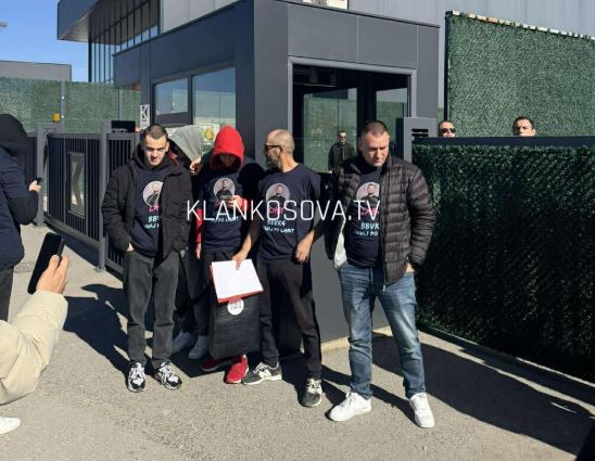 Në vendin e ngjarjes janë edhe Policia, derisa atij i janë bashkuar pak njerëz të cilët shihen të veshur me bluza mbi të cilat shkruan: “BBVK thuaj po Labi”.