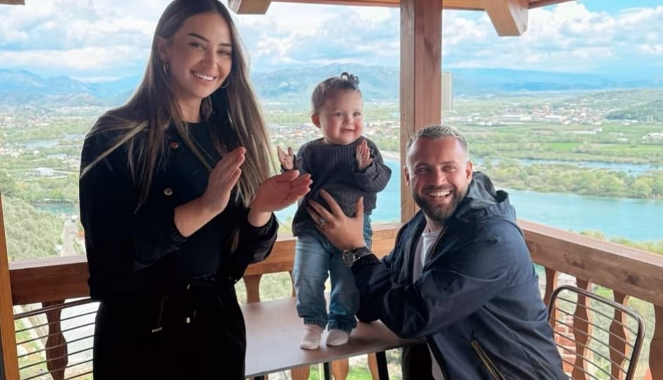 Në këtë fotografi, ai shfaqet me gruan e tij, Kiara Tito, dhe vajzën e tyre të vogël, Luna, duke krijuar një pamje të përkryer të lumturisë familjare.