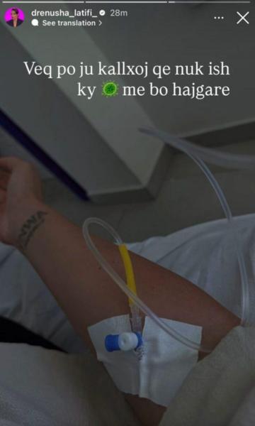 Përmes një Instastory, ajo ka ndarë një fotografi nga spitali, ku shihet e shtrirë, duke shkruar: “Veç po ju kallxoj se ky virus nuk ish me bo hajgare”.