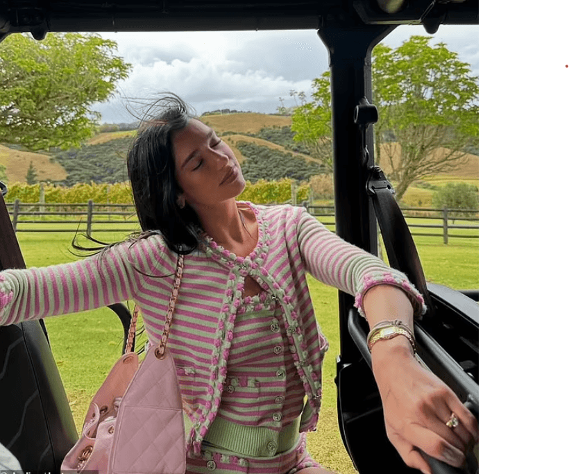 Ndërkohë që mbante çantën Chanel dhe bizhuteri argjendi dhe ari.