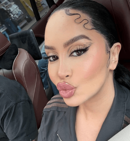 Në foto, ajo duket rrezatuese me një makijazh të theksuar, ku vihet re linja perfekte e eyelin-erit dhe buzë të fryra e me shkëlqim.
