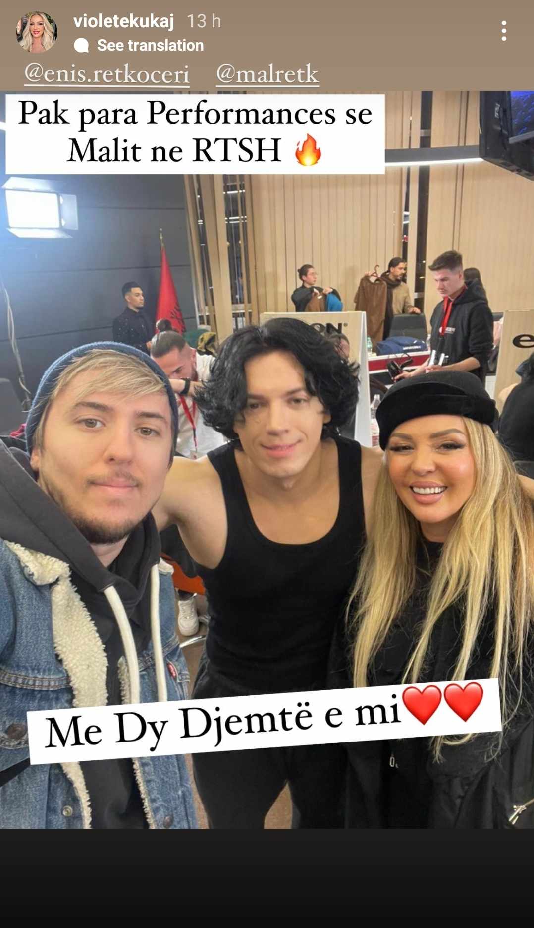 Violeta ka publikuar një foto bashkë më djemtë e saj Enis dhe Malin pak para performancës së tij së djeshme në Festivalin e Këngës në “RTSH”.
