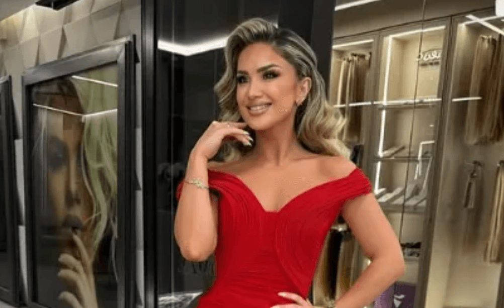 Fotografia është realizuar në një ambient modern, i cili duket se është pjesë e një salloni luksoz mode apo bukurie.