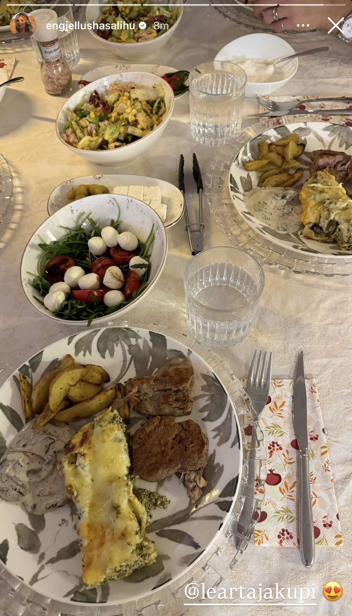 Për vizitën, Egllusha ka shtruar një drekë të bollshme, detaj që ajo e ka ndarë me ndjekësit përmes disa imazheve nga ambienti familjar.