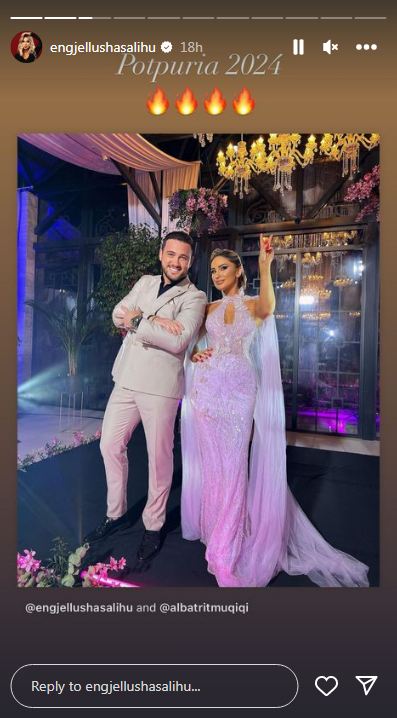 Në fotografinë e fundit ajo shihet e veshur me një fustan të bukur, pranë kolegut të saj, Albatrit Muqiqit.