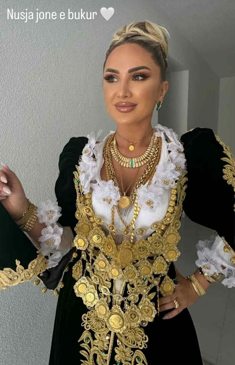 Me buzëqeshjen që s’e heq nga fytyra dhe pamjen mbresëlënëse, nusja e re tregoi respektin dhe dashurinë për traditën e Opojës. Veshja e saj e zezë me ari dhe stolitë e shumta të florinjta reflektonin elegancën dhe krenarinë që vjen me këtë rol të ri në jetë si nuse.