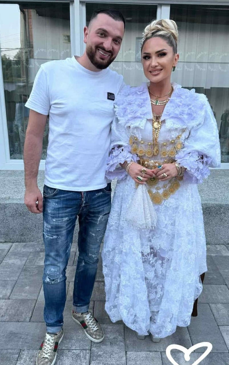Në ditën e dytë pas dasmës, Engji ka mahnitur të gjithë të pranishmit me veshjen tradicionale – dimija të bardha të punuara me detaje të arta duke i dhënë asaj pamjen e një nuseje elegante dhe me plot stil. E zbukuruar deri në detajin më të vogël, Engji ka treguar edhe një herë se tradita gjithmonë mbetet në modë.
