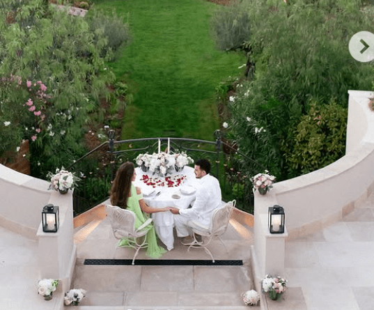 Propozimi është bërë në një ambient përrallor, ku Albi është gjunjëzuar para Elirës, i rrethuar nga një zemër e krijuar me lule të bardha dhe të kuqe, ndërsa Elira ka shpërthyer në emocion.