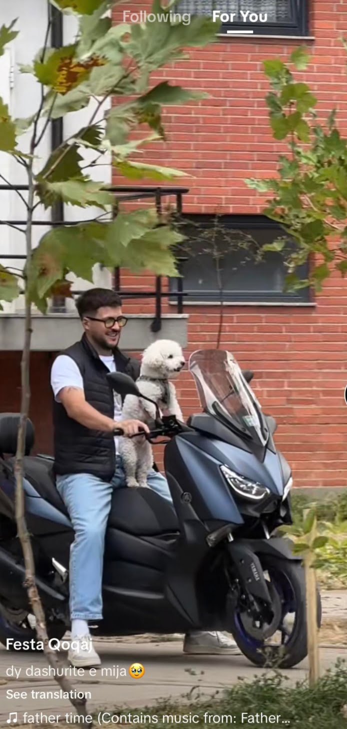 I dashuri bënë xhiro me motorr qenit të saj, Festa shkrihet e tëra.