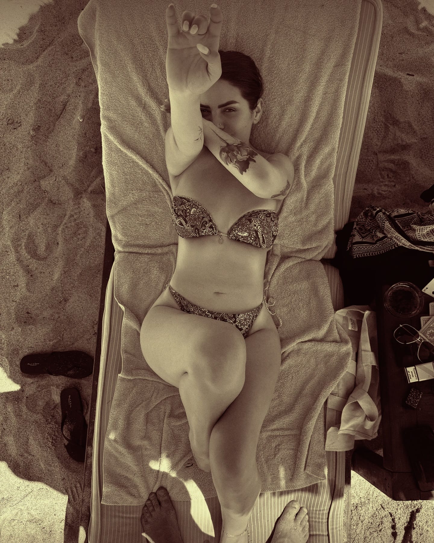 E shtrirë mbi një shezlong me bikini me motive orientale dhe trupin në super formë, këngëtarja ka zgjedhur një pozë sfiduese që i ka bërë ndjekësit të shtypin “zoom” më shumë se një herë.
