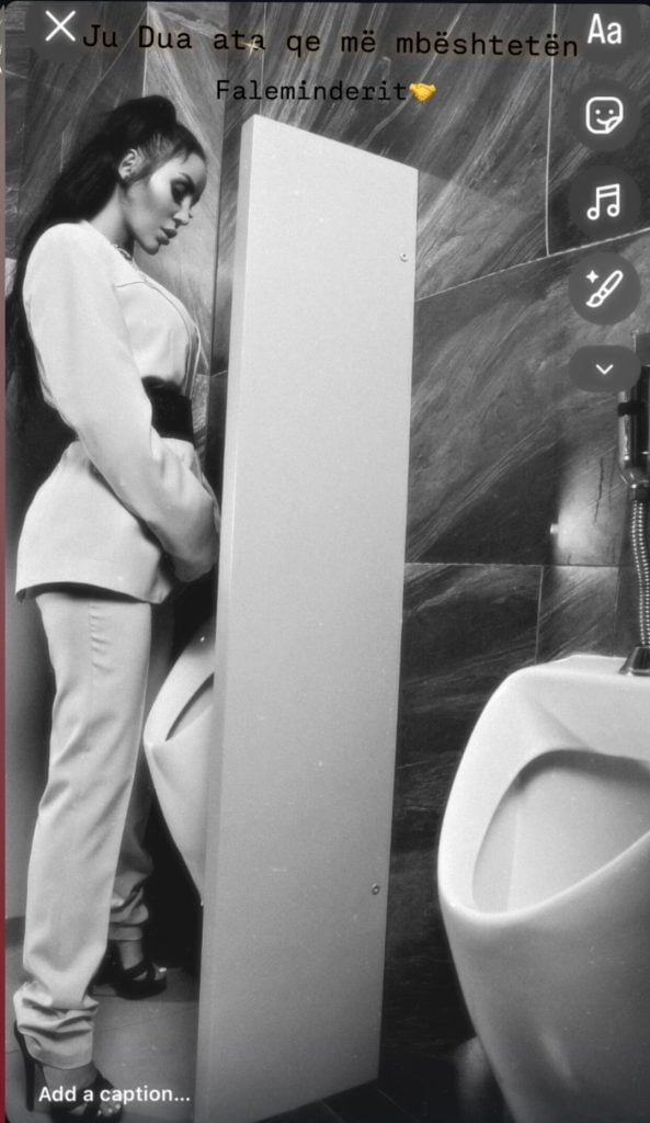 Faleminderit”, duke shprehur falënderimin e saj ndaj fansave, por postimi u shoqërua edhe me një fotografi ku shihet duke urinuar në këmbë, një gjest që u konsiderua i papërshtatshëm dhe i ulët nga shumë ndjekës dhe komentues, të cilët e kishin përkrahur dhe mbështetur gjatë qëndrimit të saj në program.