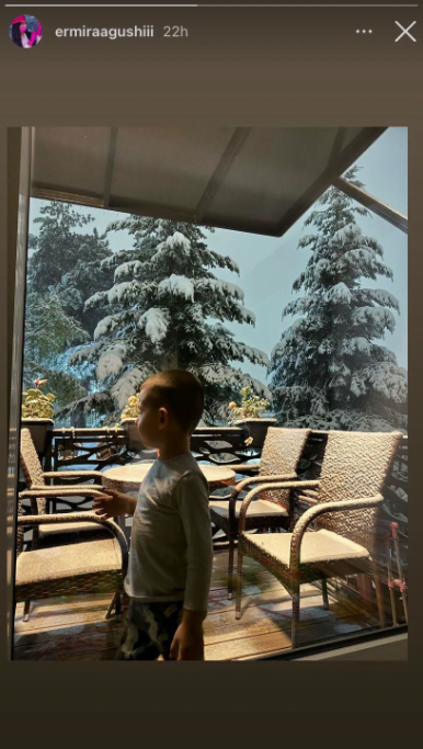 Në fotografinë e fundit ajo shihet se nuk e ka pastruar ballkonin nga bora, ose mbase e ka lënë vet të tillë.