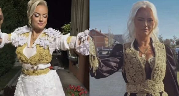 Lulja është shfaqur në veshje nuserie, ndërsa nuk ka munguar as dukati e qe shihet e mbuluar nga koka deri të këmbët.