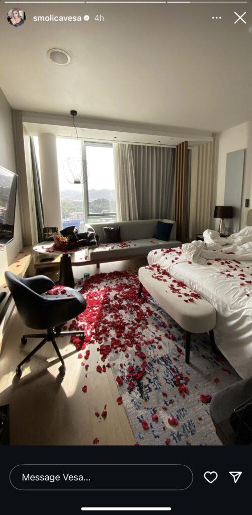 Ajo bëri një postimi në Instastory ku shihet dhoma e gjumit e dekoruar me trëndafila.