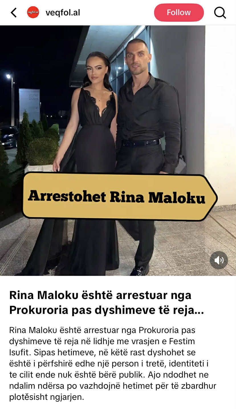 Në orët e fundit, një lajm i bujshëm ka nisur të qarkullojë në rrjetet sociale dhe disa portale, ku pretendohet se Rina Maloku është arrestuar nga Prokuroria pas dyshimeve të reja në lidhje me një ngjarje të rëndë kriminale – vrasjen e Festim Isufit.