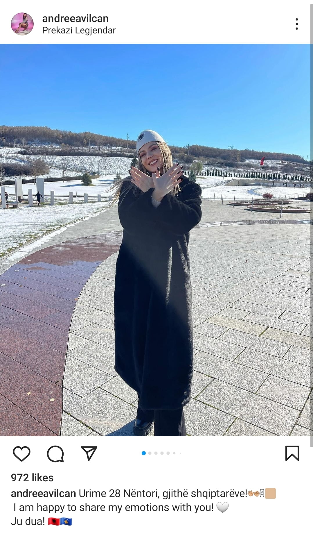 “Jam e lumtur të ndaj emocionet e mia me ju. Ju dua”, shtoi mes tjerash artistja nga Rumania.