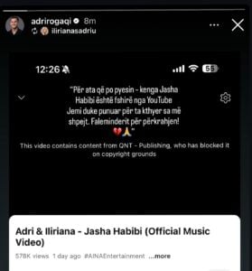 “Për të gjithë ju që po na shkruani dhe pyesni për ‘Jasha Habibi’ – po, kënga është fshirë nga YouTube përkohësisht. Po punojmë intensivisht me ekipin që kjo situatë të zgjidhet sa më shpejt dhe kënga të rikthehet online.
