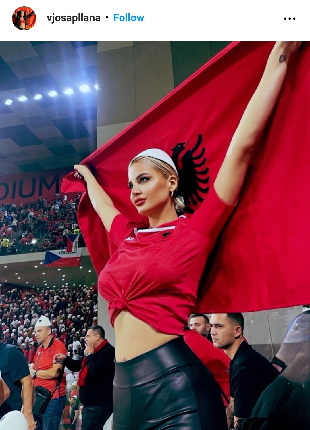 Tifozja bukuroshe shqiptare që tërhoqi vëmendjen në stadiumin “Air Albania” mbrëmë, quhet Vjosa Pllana dhe është mjaft e famshme në TikTok.