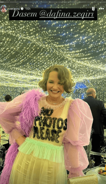 Mbishkrimi në veshjen e saj, mori gjithë vëmendjen.