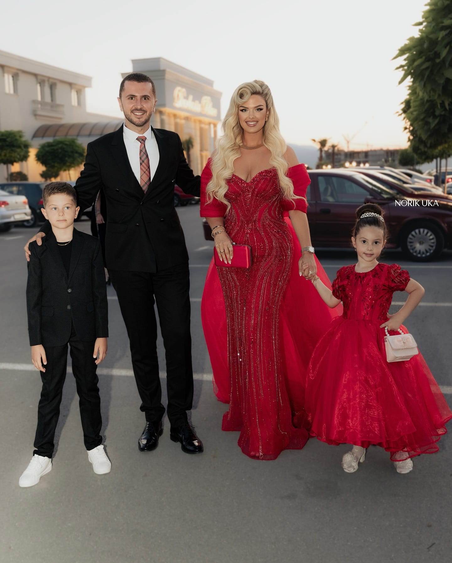 Ajo ka zgjedhur të kombinohet ë veshje me bashkëshortin dhe fëmijët ku kanë zgjedhur ngjyrën e kuqe dhe të zezë.