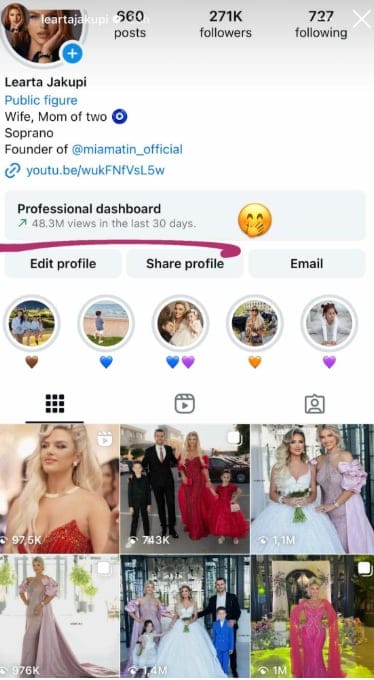 Sipas saj, angazhimi rreth dasmës së Engjëllushes rezultoi të jetë një sukses i vërtetë mediatik: shikimet, pëlqimet, komentet dhe ndërveprimet me ndjekësit ishin në nivele rekord. Postimet e saj kanë arritur miliona shikime, ndërsa grafikat e rritjes së interaksionit në profilin e saj janë dëshmi e qartë se ajo ka ditur si të përfitojë maksimalisht nga kjo ngjarje.