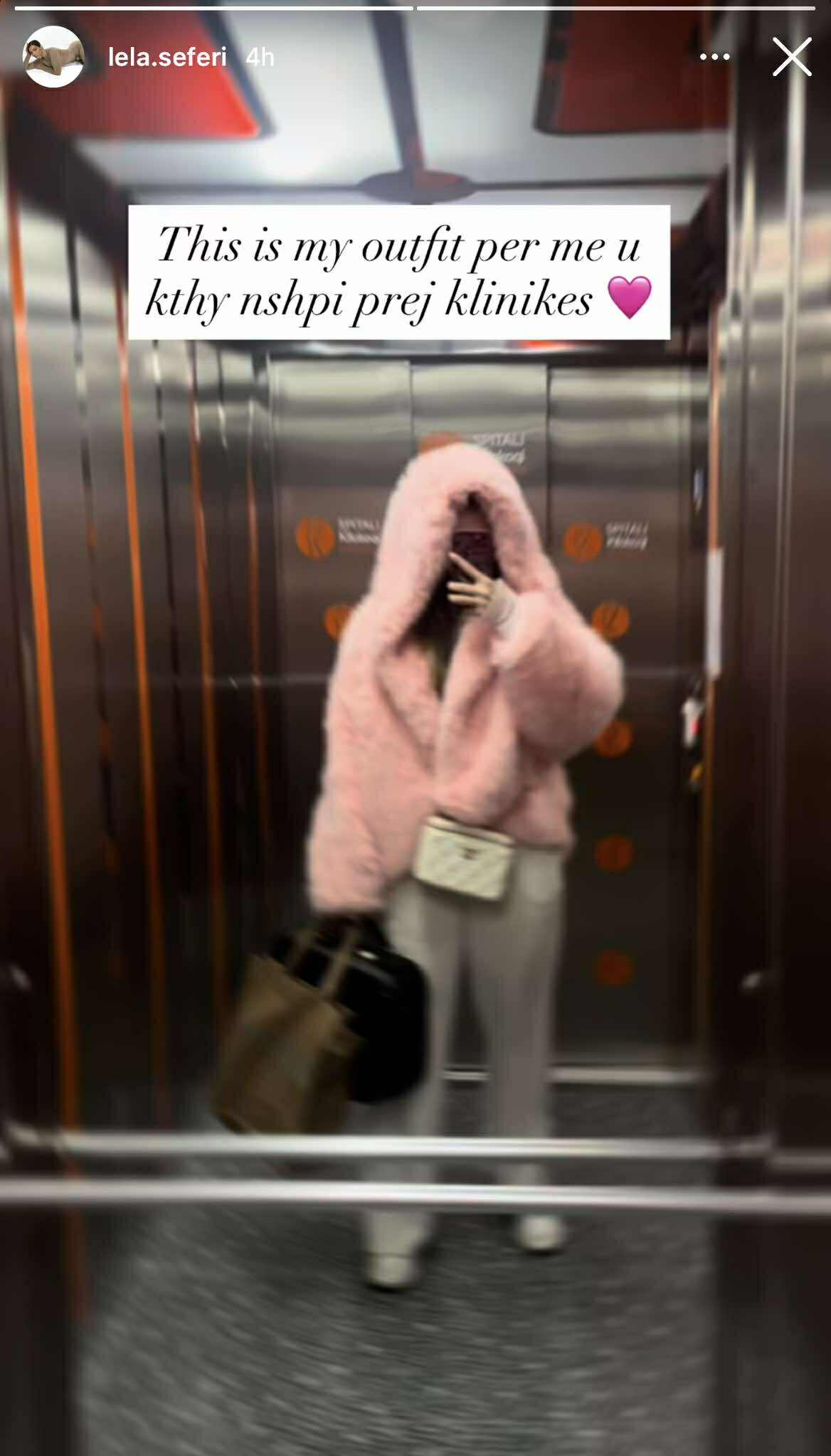 Pas përfundimit të trajtimit, Seferi është liruar nga klinika dhe ka ndarë një foto të bërë në ashensor, duke treguar momentin e daljes.