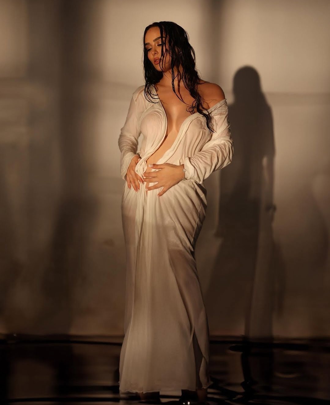 Me veshje të tejdukshme dhe pa riçipeta, Xhensila po dilet super joshëse në javët e fundit të shtatzënisë.