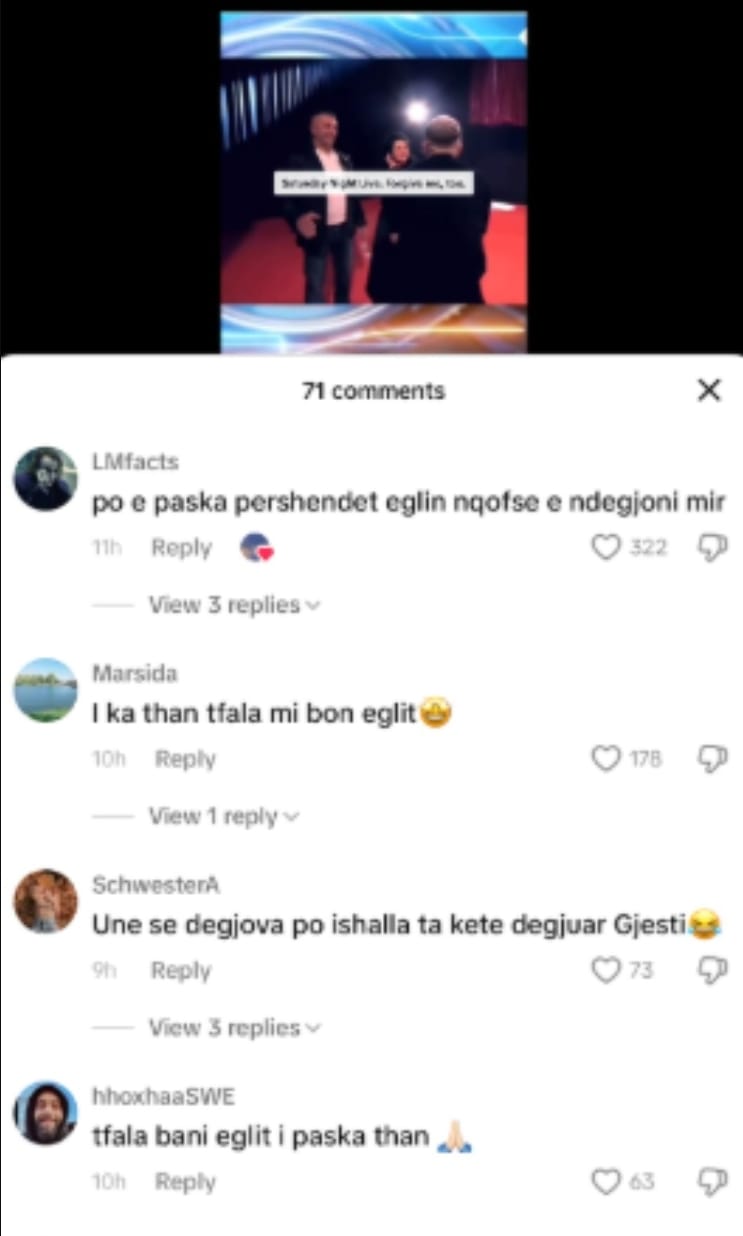 Njëjtë kanë aluduar edhe nëpër komente, se ajo i ka thënë Gjestit t’i bëjë të fala Eglit.