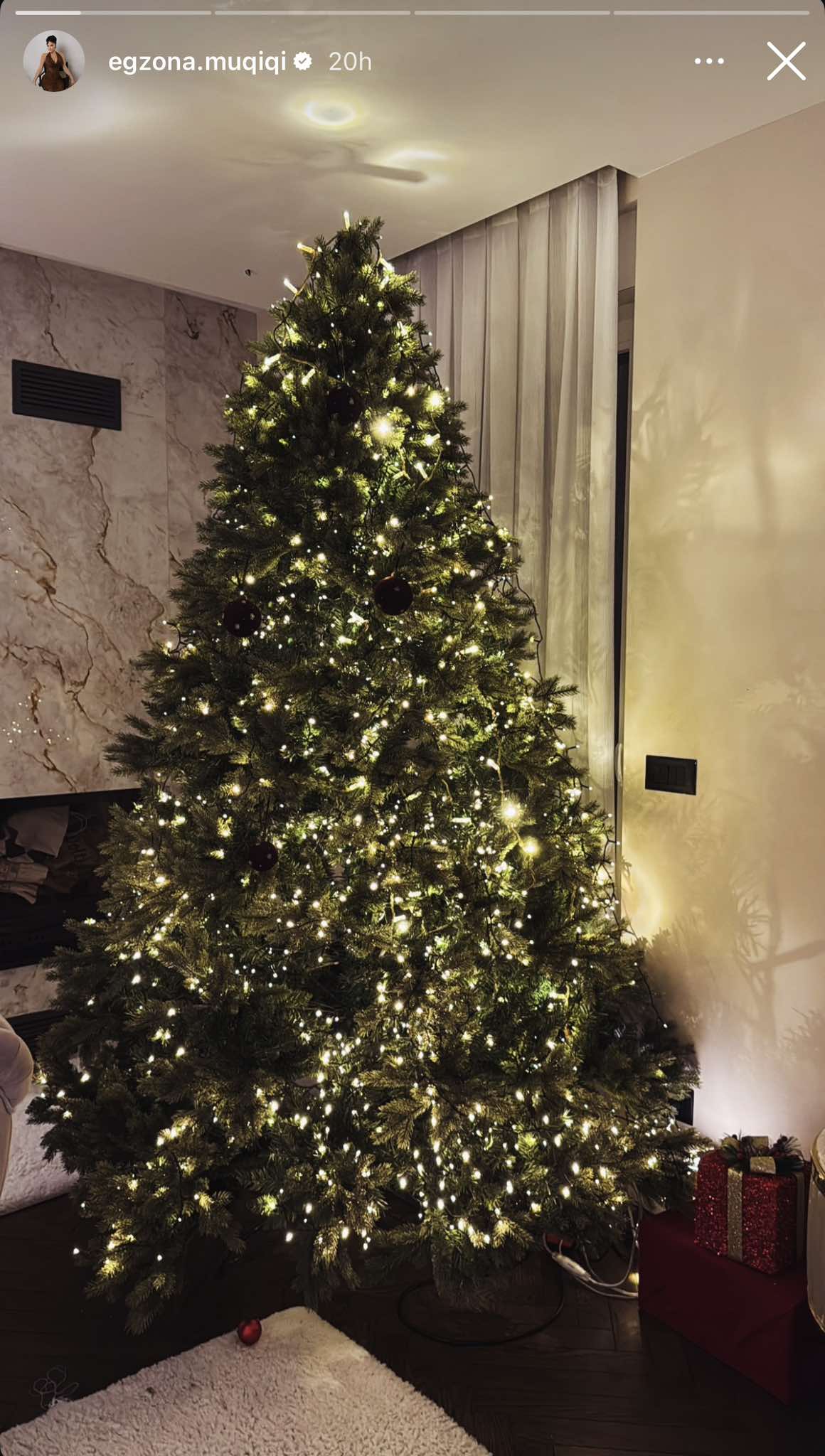 Bashkëshortja e tij, Egzona, ka ndarë në rrjete sociale një foto pranë bredhit gjigant të zbukuruar për festat e fundvitit.