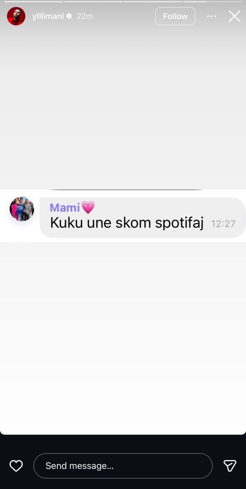 Yll Limani ndau së fundmi në InstaStory-n e tij një mesazh shumë të veçantë nga nëna e tij. Ajo me humor dhe sinqeritet ka treguar “problemin” e saj rreth këngës së re, duke shkruar: